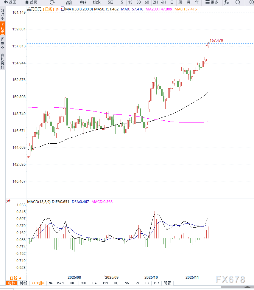 与此同时,美国方面美元重新逼近本月高点,因10月联储会议记录显示内部对于后续操作存在分歧,降低了市场对12月降息的预期。投资者普遍等待延迟发布的美国非农就业报告,以进一步判断联储路径广升网,并间接影响美元兑日元的走势。